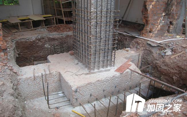 2、挖开基础:根据加固的房屋基础,在施工场地内放出挖基础边线及标高。由于场地所限,土方必须及时运出,基础挖开后,量测基础实际标高及尺寸,做好基础记录,基础表面浮土及杂物要清理干净并在基础测定的位置上引出150mm的孔。